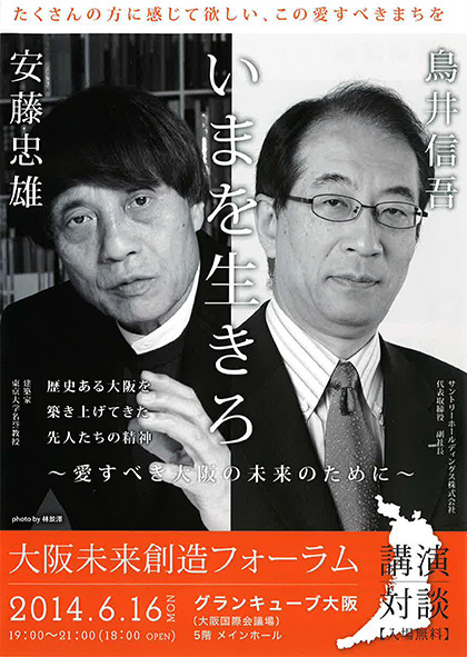 第2部では「大阪人の心意気を呼び起こせ!」をテーマに、安藤忠雄氏とサントリーホールディングス代表取締役副社長の鳥井信吾氏が、会場参加型のパネルディスカッションを開催いたします。