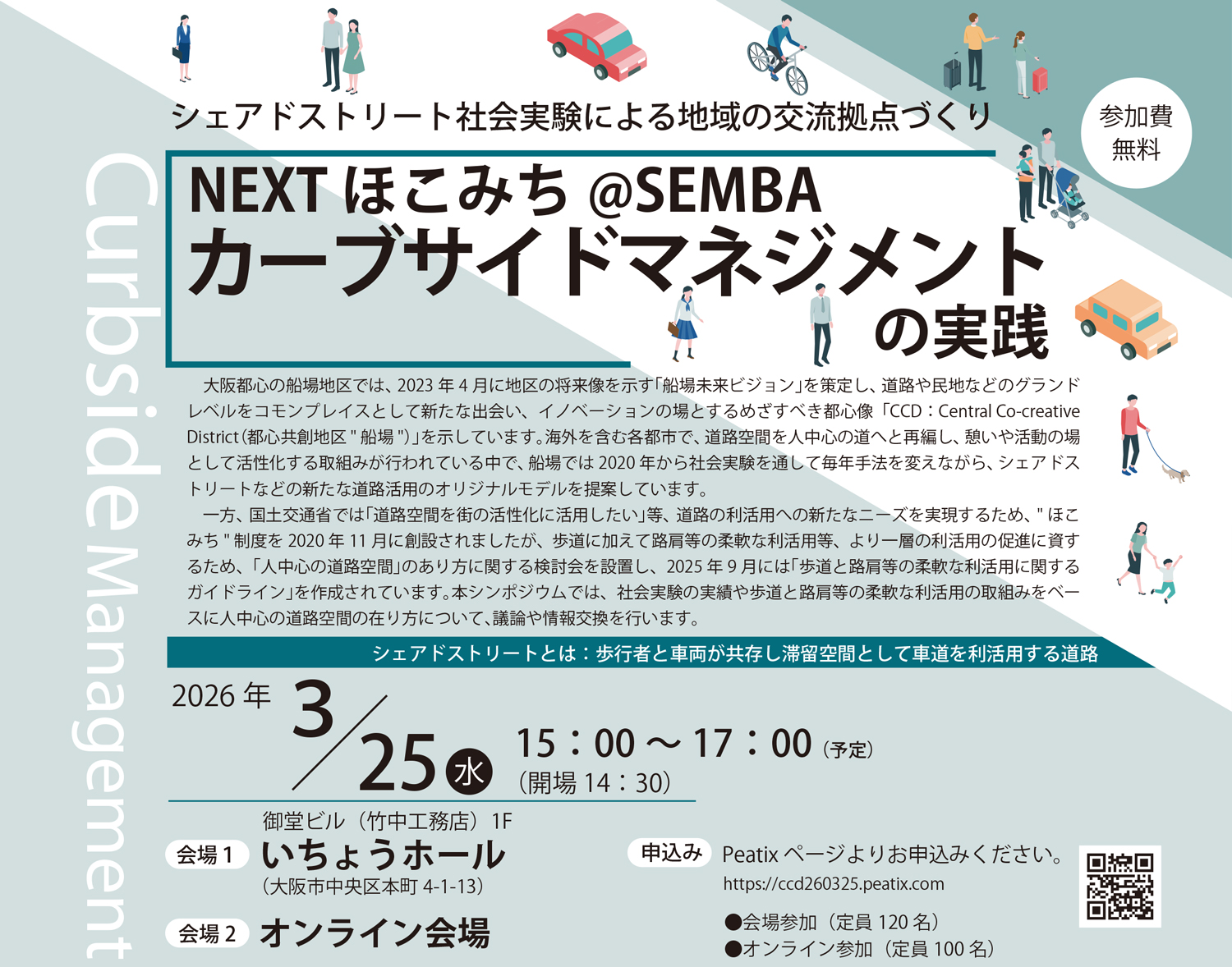 大阪市中央区の船場地域で、2026年3月6日(金)~8日(日) に「船場シェアードストリート2025社会実験」...