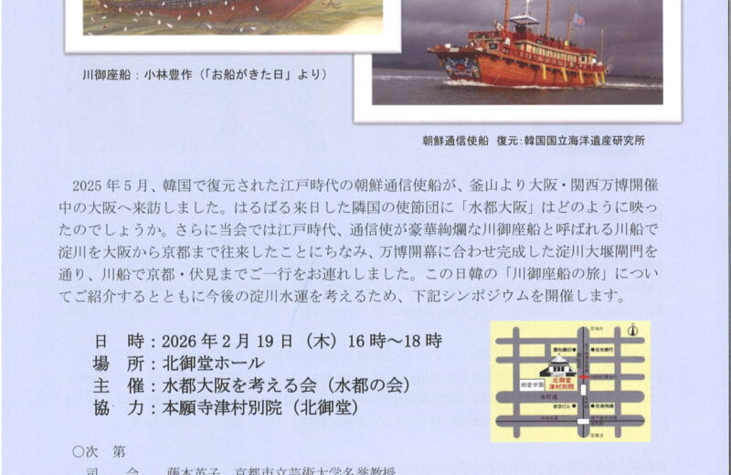 北御堂「淀川水運と川御座船シンポジウム」開催(2026/2/19)