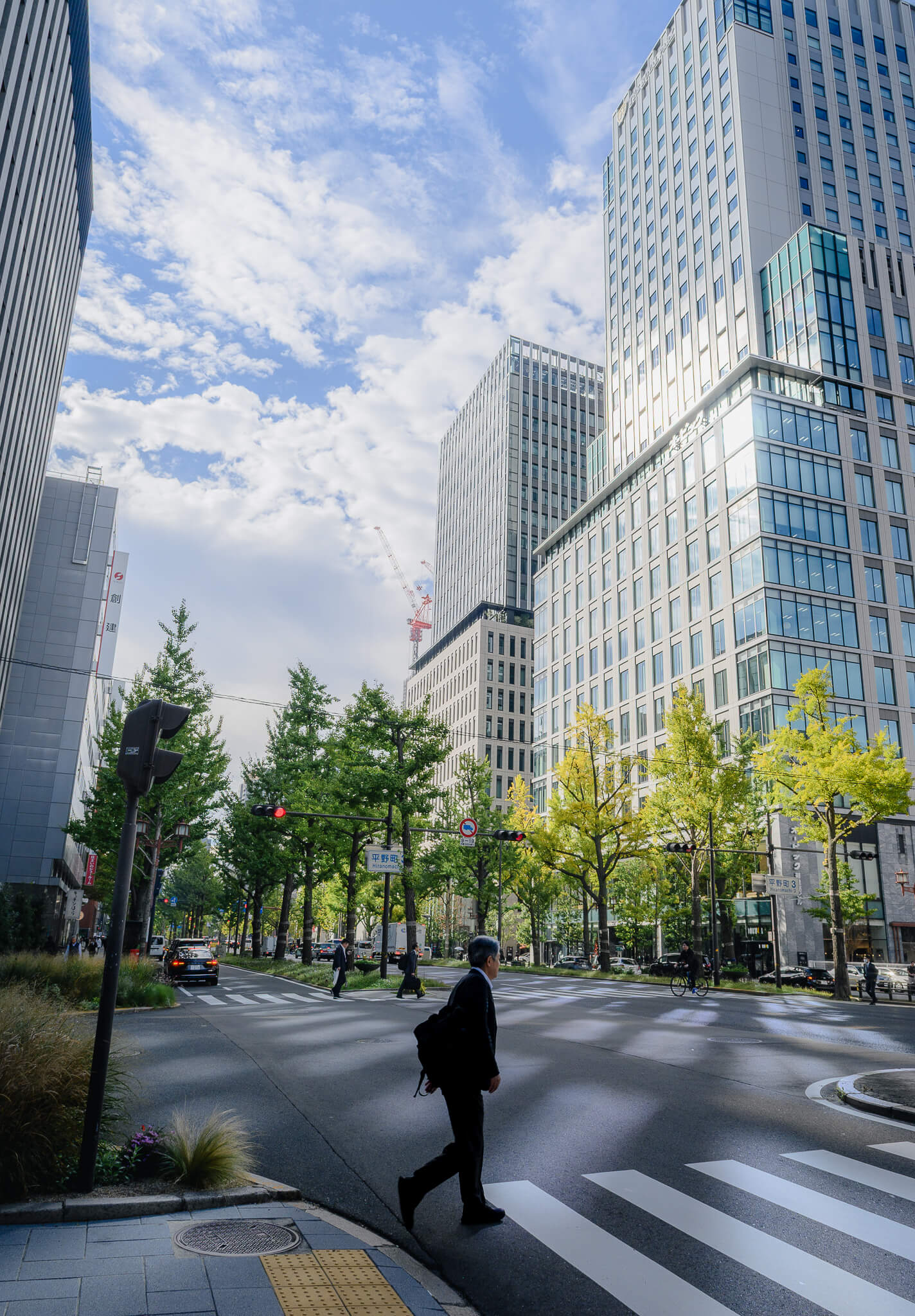 2〜11月にかけて、御堂筋の緑や空気の移ろい、ビルの合間に差し込む光、秋の気配、そして冬を迎えるイルミネーションまで――