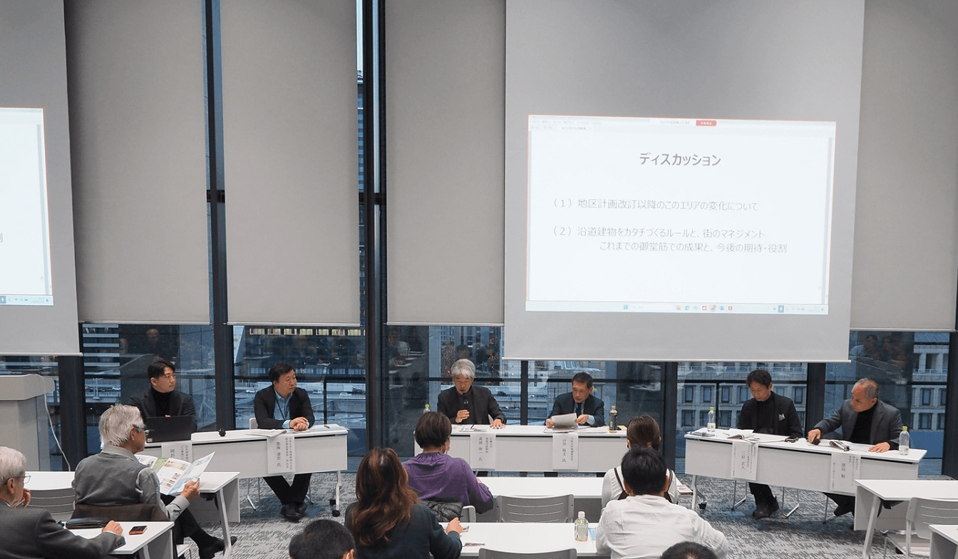 当日は、会場とオンラインを合わせて100名近くの方が参加し、御堂筋への関心の高さがうかがえました。