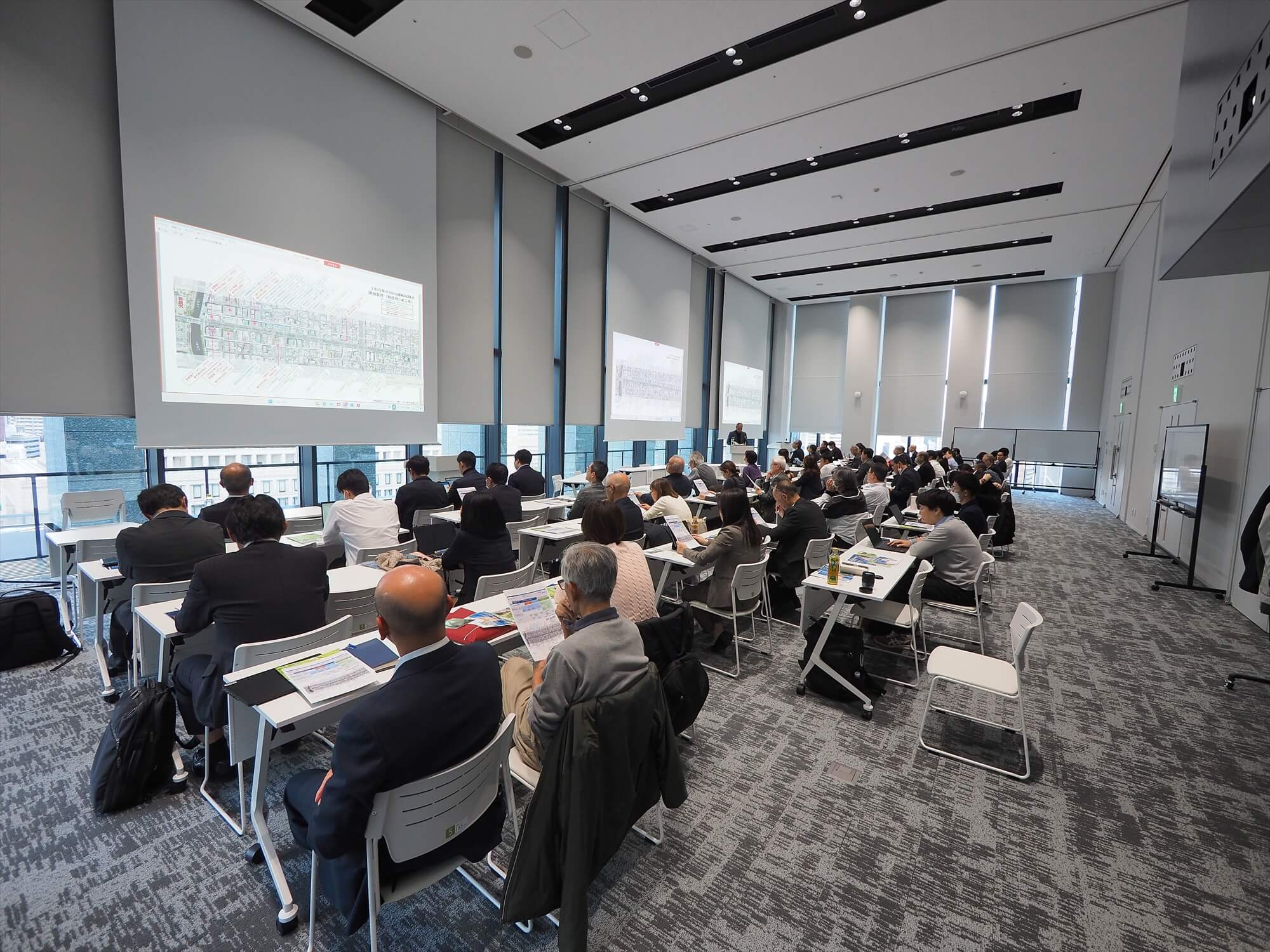 今回のシンポジウムは、その改定から10年の節目を迎えた今、これまでの変化を振り返りながら、これからの街のルールとエリアマネジメントの役割を考えることを目的に、御堂筋まちづくりネットワークの代表理事であり、大阪ガス株式会社常務取締役の須藤治氏・事務局である株式会社竹中工務店原田裕氏からその趣旨が説明されました。