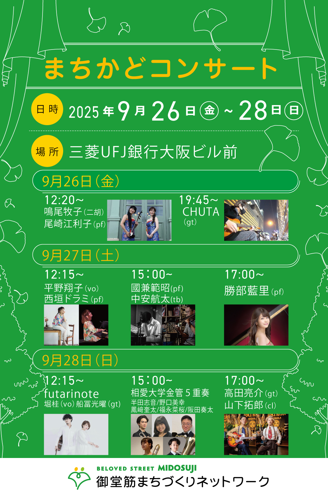 「まちかどコンサート in 御堂筋グランピング2025」出演者情報(9/26~28)